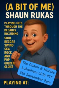 Join us for a great night of music with local singer Shaun Rukus who will be performing great hits from across the decades.